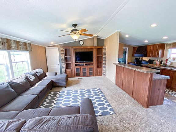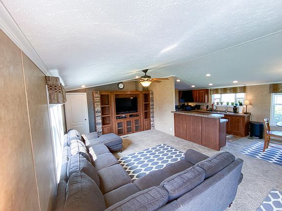 BACK ON THE MARKET! Don't miss the great opportunity to snag a WONDERFUL home. HOLY COW! I'm not sure where to start with this one. This double wide on a permanent foundation is in IMMACULATE condition, inside and out! You get 360 degree farm views, an amazing yard for your family to play, a deck at the rear of the home leading to a gravel setting area with fire pit for family entertainment, and we haven't even made it inside yet! Upon entering you're welcomed to a spacious living room complete with BUILT IN entertainment center as well as a bar area connecting the kitchen. The master boasts a semi-walk in closet and an over sized tub. The 2 other bedrooms on the opposite end of the home have their own access to the guest bathroom. All appliances also convey with the home. I almost forgot to add that this homes comes with a ONE YEAR warranty! This is such a unique home in this market, do NOT let it slip by! call today for your showing.
