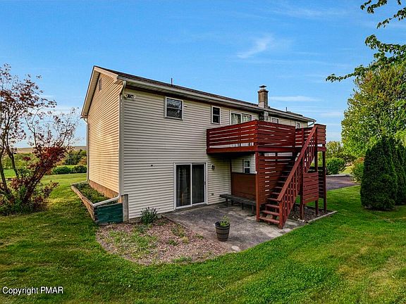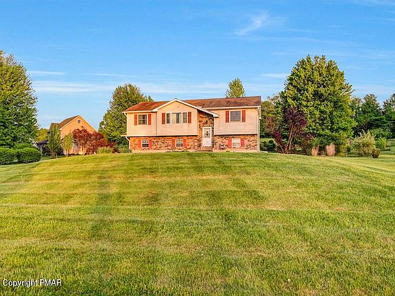 Charming Bi-Level Home with 4 Bedrooms, 2.5 Bathrooms, 2+ Car Garage and located on a 1.61 Acre corner lot. Open-Floor-Plan Kitchen/Eating Area/Living Room with a View Westward of the Appalachian Mountains through the Expansive Front Windows. Bar Seating at the Kitchen Counter & Access to Rear Deck. Master Suite on the Main Level w Walk-In Closet & Full Bath. 2 Additional Bedrooms & 2nd Full Bath on the remainder of the Main level. Lower Level Family Room & 4th Bedroom with Half Bath have Access to Backyard 14x12 Patio. Generator Ready, Replacement Windows, Oil Hot Water Baseboard & Radiant (lower level) Heat, NO DUES Neighborhood, Shed, Generous Corner Lot with View..!