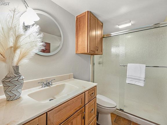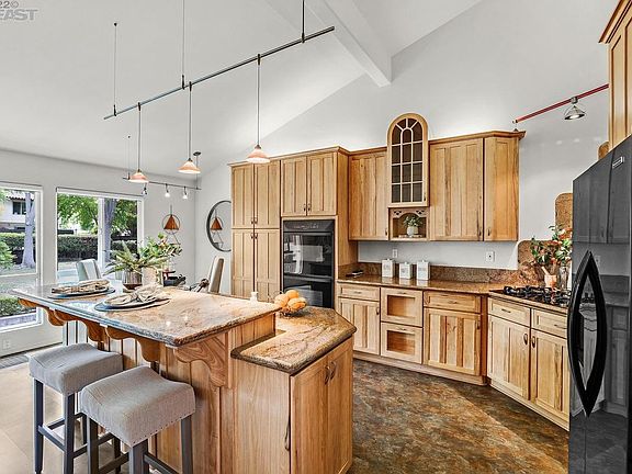 Located in the heart of Mission San Jose. Stunning end-unit townhouse. Beautifully remodeled. Freshly painted interior. Light and bright throughout with expansive views of the greenbelt. Gourmet island kitchen/great room with breakfast bar, granite slab, gas range, and hickory cabinetry. Dramatic vaulted ceilings with designer lighting and silhouette shades. Huge master suite with walk-in closet. Updated bath with tub/shower combination. Elegant laminate flooring. Downstairs: Two additional spacious bedrooms and updated bath. Sliding glass doors lead out to charming private and fenced patio. Large, attached two-car garage with interior access, plus extra parking space. Dual-pane windows, air conditioning (a rarity!). Washer, dryer, refrigerator, and TV stay. Membership to Highlands Swim Club. Tenants Pay Utilities (Water, Gas/Electricity, Garbage)