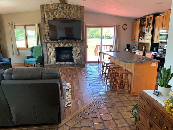 One owner 3 bedroom 3 1/2 bath home on the edge of town. Open floor plan, Stone fireplace and vaulted ceilings. Master bath has separate tub and shower. Big family room in the lower level that also has wood burning stove and bathroom. Freshly painted and move in ready. Newer windows, furnace, central air and some new flooring. Oversized three car garage that is finished and heated.