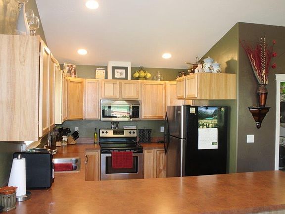 Well cared for 3 bed, 2 bath home on oversized lot bordering homeowner park. Easy access to Rails to Trails. Vaulted ceiling, hickory cabinets. Master with walk-in closet; A/C; insulated heated garage with 240-volt available; and underground sprinklers make this a honey you won't want to miss!