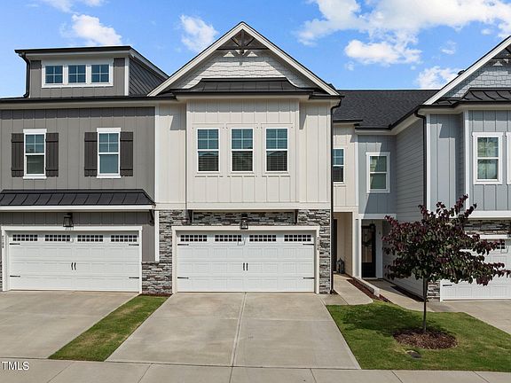 Prime location meets modern elegance! This contemporary, farmhouse-inspired townhome in Cary offers unparalleled convenience, just minutes from everything, including the premier shopping, dining, and entertainment of Fenton. With a spacious, open floor plan and numerous upgrades, this home is both luxurious and functional. The first floor, featuring luxury vinyl flooring, sets the tone for effortless entertaining and relaxation. The gourmet kitchen shines with an oversized island, farmhouse sink, gas cooktop, and stainless steel appliances. Upstairs, the generous primary suite includes a walk-in closet and a spa-like shower, complemented by secondary bedrooms, an additional bathroom, and a spacious laundry room. The expansive third level offers endless possibilities, whether you envision a theater room, gym, or creative space, with a walk-in unfinished attic for extra storage. Lovingly cared for and well-maintained, this home - just over two years old - is your opportunity to live in one of the Triangle's most sought-after zip codes. Don't miss out!