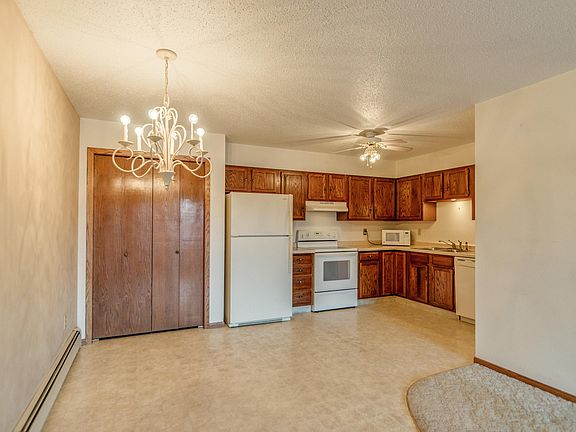 Here is your chance for carefree living at an affordable price! Don't wait to call and see this cozy 55+ condo in a security building. The condo offers many updates and an open floor plan and a private maintenance-free deck. Extra private storage closet off of balcony! There are 2 large bedrooms with newer windows. The full bath has updated tiled floors and updated paint! The separate laundry room also has tiled floors and tons of storage - and the washer & dryer are included! Need a bit more space, or don't have everything ready for company, head downstairs via the ELEVATOR or short flight of stairs to the shared community coffee & conference room - coffee is on by 9 am for all to enjoy! New wall a/c unit in 2018! The association just installed new exterior service doors in Sept, 2019. The nice-sized single-stall garage is just steps from the security building. Condo fee includes: heat, water, trash, sewer, exterior insurance and maintenance, lawn care, snow removal, & exterior sprinklers! All you pay extra is your interior insurance and electricity!