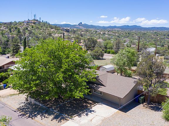 A desirable location that is only minutes to shopping, restaurants, Courthouse square, and recreational lakes. 3-bedroom, 2-bath home that is painted inside and out and ready for you to move-in. Feel the tranquility when you enter this lovely home. Many upgrades, replaced windows, upgraded countertops, new backsplash, stainless appliances, which include a dishwasher and gorgeous gas stove. There are mature trees, rock landscaping, covered front porch, double gate, privacy fenced backyard. The roof is approximately seven years old. There is loads of parking with driveways on both sides of the home, RV parking, and approximately 12' X 16' storage shed. The backyard open deck is a great place to barbecue and enjoy the panoramic views of Granite Mountain, mountain ranges, and outstanding