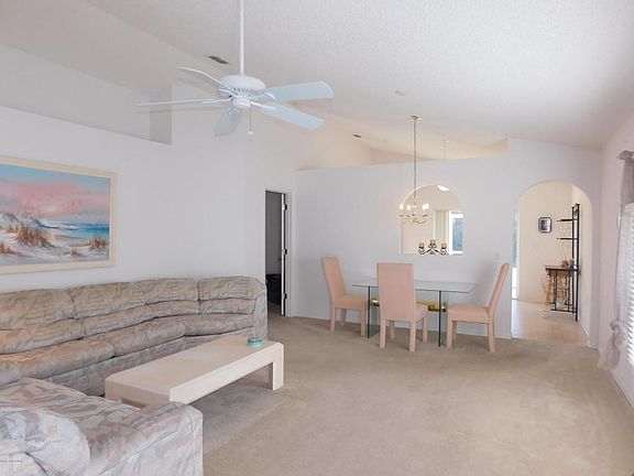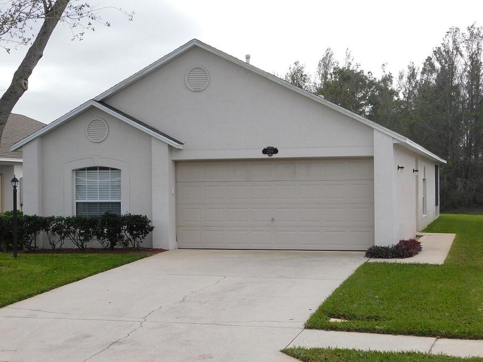 1200+ sq ft, 3b/2b NE Palm Bay home located in lovely community. Enter the spacious family room from the front or the 2-car garage. Split floor plan with open kitchen provides view of the family room, kitchen and dining are altogether. Master suite offers walk in closet and ceiling fan. Arched entryways and vaulted ceilings add a nice touch to the decor. Enclosed back porch overlooks green preserve. Large community pool within walking distance. Schedule an appointment today to see this charming home.