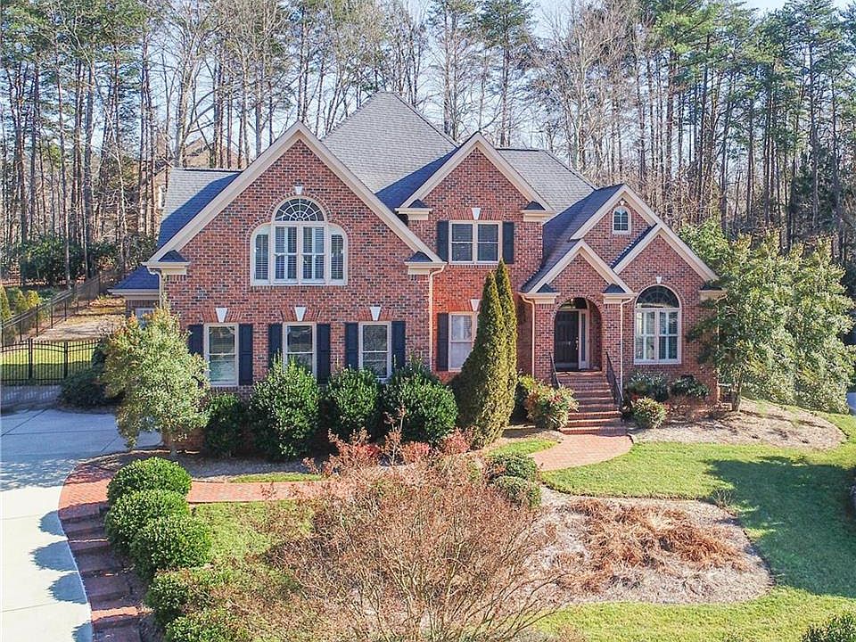 One of the most convenient and desirable locations in town, great sidewalk and walking community, not far from shopping, restaurants, parks and I73 and 840, Custom bright all brick home, 9' ceilings on main level, living room or office, spacious dinning room, plantation shutters, french doors leading to the den which opens into the spacious beautiful kitchen with island and breakfast area, lovey hardwood floors, spacious master on main level with large walk in closet, split vanities separate shower and jetted tub, laundry room on main level with utility sink, 3 upper bedrooms plus bonus room, walk in attic space, private fenced wrought iron fencing in the back yard, neutral move in ready home