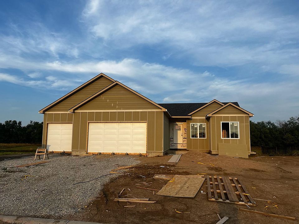 Welcome to Cedar Creek, where modern living meets serene lake views. This brand-new home showcases a contemporary design with high-quality finishes throughout. Step inside to discover a spacious open floor plan with luxury vinyl plank flooring, granite countertops, and vaulted ceilings that create an inviting atmosphere. The main level features three bedrooms and two bathrooms, including a stylish master suite. The living room is highlighted by an elegant electric fireplace, perfect for cozy evenings. Enjoy outdoor living on the covered deck, overlooking the tranquil lake. The basement offers one finished bathroom, with the option to add a rec room and two additional bedrooms at an extra cost, allowing you to customize the space to your needs. This home also includes a three-car garage, a sprinkler system, and lush sod, ensuring both convenience and curb appeal. Don't miss the opportunity to own a beautiful new home in the sought-after Cedar Creek development.
