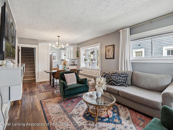 Welcome to the epitome of charm and convenience in this delightful bungalow, ideally positioned just moments away from Downtown Lansing, Michigan State University, and REO Town. Step inside from a covered front porch to discover stunning engineered floors on the main floor, creating a seamless flow throughout the space. The updated kitchen is a chef's delight, showcasing painted wood cabinets, a stainless steel fridge, and updated hardware, offering both style and functionality. The main floor features two bedrooms and a full bath, providing comfortable accommodations for guests or family members. Upstairs, two additional bedrooms await, accompanied by a second full bath. Both upstairs bedrooms boast walk-in closets and ample storage. Outside, the fully fenced backyard with a patio and built-in planters offers a private oasis, perfect for entertaining guests or letting your furry friends roam freely. Experience the perfect blend of character and modern convenience in this charming bungalow. Don't miss out on the opportunity to make it yours. Other features include a newer roof, central air on the main level, and countless cosmetic updates!