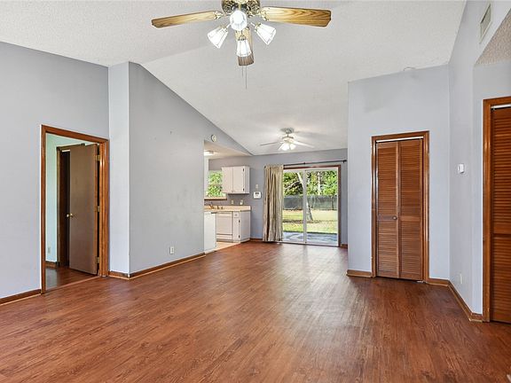 Nice sized yard, 3 bedroom split floor plan in established neighborhood close to NSB Kings Bay! Kitchen with pantry and breakfast nook, 2 bedrooms have walk-in closets-all closets have wooden shelving. The owner's bedroom features a private bath with deep whirlpool tub. Other features include: vaulted ceiling, covered front porch, open back patio, spacious inside laundry room with a window, single attached car garage. Easy to show!