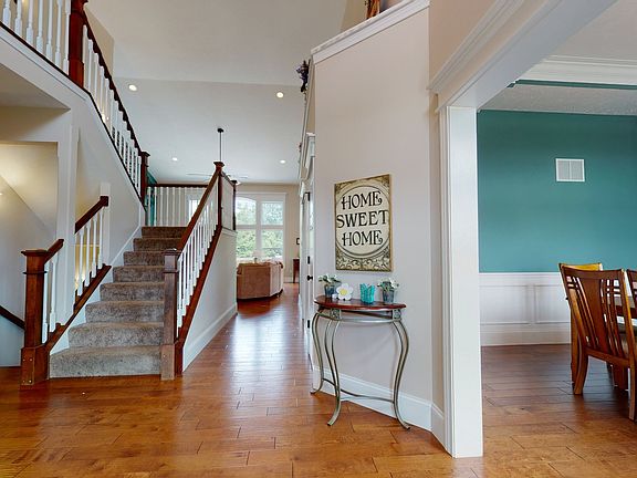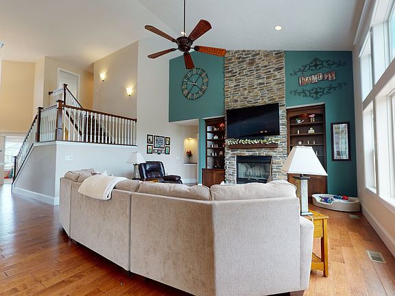 STUNNING * CUSTOM * ONE owner home... Ready to Move Right Into, all on.61 of an acre! The main floor (hardwood throughout most) invites you into a 2 story great room, complete with a TWO story, stone fireplace and great natural light. The Spacious eat-in-kitchen includes all appliances that stay, granite counters, custom cabinets, a breakfast bar, walk-in pantry and table area. Don't forget about the coffee station too! The formal dining room is nearby. Main floor owner's suite boasts "relax in me" with a private bath which includes two sinks, jetted tub, XL walk-shower and XL closet. Main floor laundry (includes washer and dryer) with lockers, and office. The 2nd floor has a bedroom suite, 2 additional bedrooms and full bath. That's 4 bedrooms and 3 baths on main 2 floors! The basement is a "walk out"style complete with a theater room, full-custom bar with appliances listed, and seating area, with a full bath nearby. There is the option for a 5th bedroom. No rear neighbors so enjoy that spacious-tree lined back yard. Lots of storage too. 3 car garage.