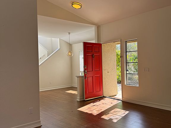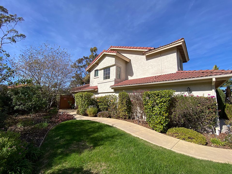 Modern two story, light filled townhome in desirable Village Park, walkable to Diegueno Middle School. Green belts. Two car garage. recently redone main bathroom. Fresh interior paint, new carpet stairs and upstairs. Dine in kitchen, fireplace, back patio with grape vines, lemon trees, banana trees, lime trees, large front lawn and copious nature for privacy and joy. Built in firepit in back patio. Portable AC units. Trash & recycling service included. ADT security system ready for transfer. 1+ year rental terms.