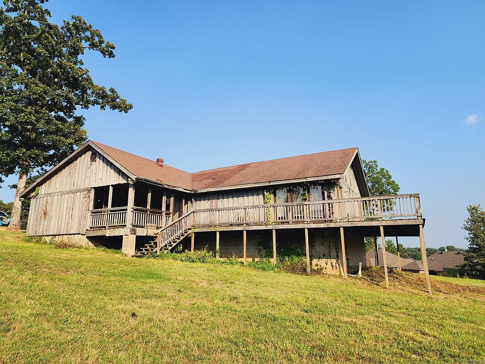 This property is being sold at $53.72 sq ft. The property offers 2,848 square feet of living space, providing ample room for renovation and customization. Along with the open living room, kitchen , and dining room, there are four bedrooms, two bathrooms, one office, and laundry room, which can accommodate a larger family or provide extra space for guests. The master bedroom has two walk-in closets with wood shelving and racks. The master bathroom is large with two separate vanities, large tub, and shower. The open layout between the living room, kitchen, and dining room creates a spacious and inviting atmosphere, perfect for entertaining or family gatherings. From the kitchen area is one large bedroom or another living room. It is open to the wrap-around deck. The presence of a partially wrapped-around deck adds outdoor living space and potentially enhances the overall appeal of the home. The property sits on a sizable .81 acre lot, which can provide opportunities for landscaping, gardening, or even future expansion. This property is being sold AS IS.