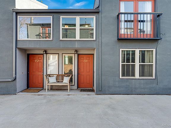 Welcome to this wonderful two-level townhome in the highly desirable LoHi neighborhood of Denver, offering an unbeatable location within walking distance to downtown, LoDo, Coors Field, and an array of trendy restaurants. As you step into the residence, you'll be greeted by a fantastic courtyard, setting the tone for the charming and welcoming atmosphere that permeates throughout. The lower level boasts a versatile bedroom featuring a convenient built-in Murphy bed, an attached laundry for added convenience, and an en-suite bath, creating an ideal space for accommodating guests with ease. The upper level impresses with an open floor plan that seamlessly connects the living, dining, and kitchen areas. Durable laminate wood floors provide a modern and stylish foundation, complemented by a cozy fireplace and a private balcony. The recently remodeled kitchen is a chef's delight, showcasing ample white Shaker cabinetry, stainless steel appliances, quartz countertops, modern open shelving and pretty pendant lighting for a touch of elegance. A charming nook area provides an ideal space for a home office. The upper level primary retreat is a spacious haven featuring vaulted ceilings, a cute Juliette balcony to let in an abundance of light and fresh air, and a private door to the shared full bath. The thoughtful layout ensures comfort and privacy. This home is truly move-in-ready, with great storage solutions throughout. One assigned parking space in the underground garage adds convenience to city living. Welcome Home!