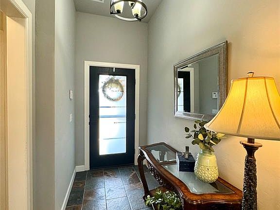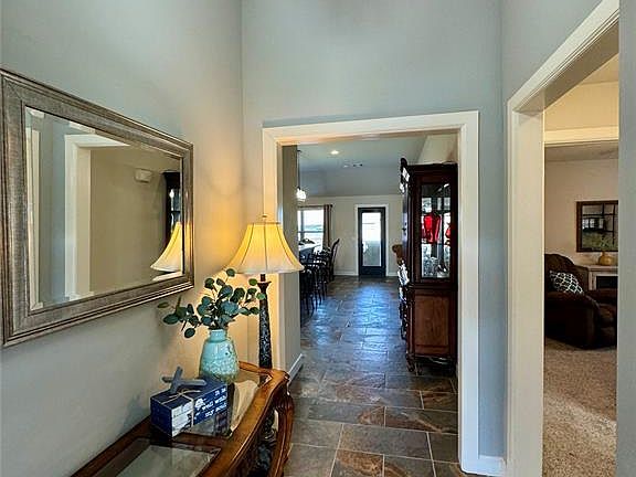 Luxury touches set this beautiful home apart! There is a 3-car garage, 3 bedrooms and 2 full baths. Great upgrades include granite counters, a welcoming corner fireplace and slate-style flooring. Primary suite as a vaulted ceiling and an en suite bath w/ large closet and an oversized shower. There's a safe room in the garage. Enjoy greeting guests from the covered front porch or have a quiet moment on your private back deck. Close to OBU and conveniences. Neighborhood has it's own park; great for walking!