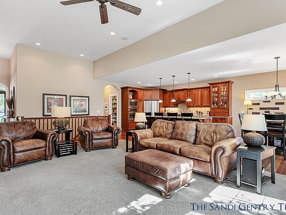 CUSTOM-BUILT AND METICULOUSLY MAINTAINED HOME SITTING ON OVER HALF AN ACRE WITH PRIVATE POND! This stunning estate boasts an Open Floor Plan, high-end amenities, and over 3,300 sq. ft throughout. Walk in the foyer and be greeted by the Open floor plan leading you to the Living room with Gas fireplace and built ins, all with views of the Pond. The gourmet kitchen has Granite countertops, custom cabinetry, a formal dining space with deck access and a large pantry, 1/2 bath, mudroom and spacious Main Floor Laundry room. The Main level also features 2 guest bds/office and the Master Suite boasting a large bathroom with heating floors, Whirlpool tub with TV, walk in tiled shower, and large walk-in closet with built-in cabinets.