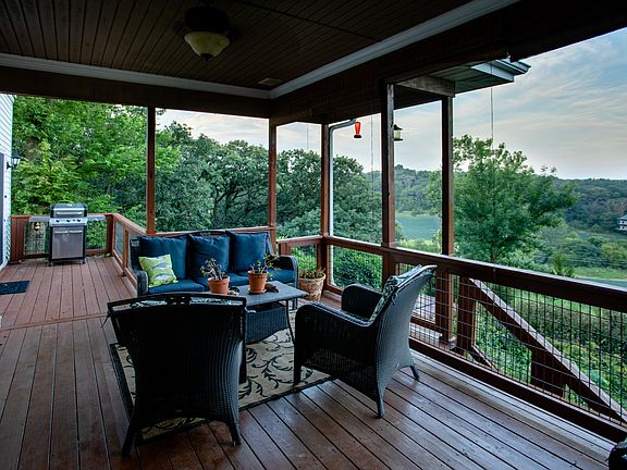 Hidden away in the Loess Hills just off of a National Scenic Byway, 10 min from metro shopping, on the fringe of the city in a desirably located end of a tranquil cul-de-sac surrounded by mature oak trees and its own nature trail is this charming traditional colonial 5 bedroom 3.5 bath estate. Spanning over 5,000 sf, the first floor encompasses beautiful hard wood floors throughout, a recently renovated kitchen ideal for entertaining that flows through to the living room with warm fireplace, a separate sitting wet bar area, study with French doors and flex space built out above the garage with its own private stair case entry. On the second floor you will find four spacious bedrooms with plenty of room, including the master suite with separate siting room, renovated bath room and a private balcony with relaxing and inspiring views. The lower level houses a large rec room, three separate rooms, one full bath and a sun room with glass that provides for a very tranquil setting that leads to outside patio with fireplace and hot tub. This lush leafy oasis is a must see.