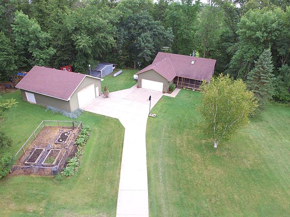 Fantastic Walkout Rambler tucked into the woods, with plenty space for gardens, and a massive playground for the kids! Check out this 3 bed 3 bath rambler located on 5 acres in Nowthen. Follow the 345 foot concrete driveway to the home and detached 30x40 garage that is fully finished with a concrete floor, and storage shelves built in. The detached garage is hooked up to the outdoor wood boiler, the wood boiler can also be used to heat the house and hot water. Home does have a forced air furnace and a wood burning fireplace also. Other buildings outside include a storage shed with partial concrete floor and a chicken coop. Inside the home you will find all living amenities on the main floor including the Laundry and Master Bed/Bath with a WIC. The finished lower level has a large family room, and additional bedroom WIC and 3/4 bath. The family room has a walkout with a new patio door. This home has an abundance of storage including a 12x9 room lined with solid wood shelving.