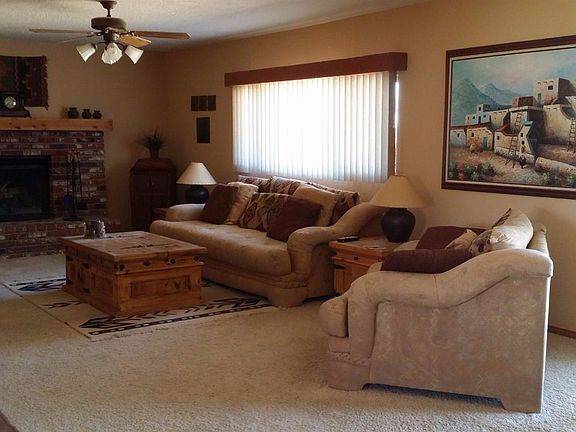 This Well Maintained Home and Property Shows Pride of Ownership! Views and ride OHV's from the property. In 2006 home was remodeled into a spacious open floor plan, replaced sliding glass door and window in family room, tiled entry and pony wall, tile in kitchen, carpet and other upgrades to the home. In 2016, more upgrades, replaced stove w/ quality self cleaning stainless steel stove and hood vent, interior paint thru out, bathroom flooring, newer water heater, exterior trim/eaves painted and replaced roof with a energy efficient cool roof. There is a lovely perfect functional kitchen with a lot of large cabinets, counter top space and storage, large breakfast bar for entertaining that opens into family room and dining area. Absolutely beautiful old brick construction wood burning fireplace with hearth and it also has a gas lighter. Dual pane windows thru out. Bathrooms have extra large cabinets and counter space. Roomy master bedroom/cedar accent wall. Lovely wood doors, trim, door jambs. Lever handle door knobs, ceiling fans, mirrored closet doors, custom window coverings in living room, family room and dining area, fresh interior paint. Covered patio's, mature auto drip landscaping, fenced/cross fenced, RV access, Finished garage with separate electric sub panel and 220 power. Also, considered horse property.