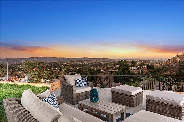 Live on top of the world! Perched high in the hills of Yorba Linda, this magnificent home offers breathtaking panoramic, city lights & Catalina views from nearly every vantage point. Completely remodeled throughout boasting elegant designer touches, this light-filled home offers every desired amenity. Sleek granite kitchen features top of the line appliances, bright white cabinetry, convenient center island, inviting wine bar and breakfast nook all open to the spacious family room creating a perfect gathering space. The downstairs floorplan has been expanded to include a dedicated office, main floor bedroom, full bath and versatile craft room. Upstairs leads to the grand master suite with a sweeping wall of windows and separate private retreat. Sumptuous spa-inspired master bath is complete with dual granite vanities, soaking tub, walk-in shower, and two closet areas. Three additional bedrooms (one en-suite) plus full bath complete the upper level. The excitement continues outdoors on the sprawling covered patio, ideal for entertaining family and friends, sparkling pool and spa, built-in BBQ and garden area. Situated on a spacious cul-de-sac lot, this ideal home and location cannot be duplicated. Short stroll to San Antonio Park and attends Travis Ranch and Yorba Linda High School.