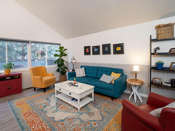 Set back off the street on nearly a half acre, this home offers a tranquil escape in the heart of Bend. Spacious entry includes bench seat, storage, coat hooks, and solatube. Main living area features southern exposure, vaulted ceilings, and wainscoting. Kitchen offers tons of cabinet and counter space and gas range. Sliders off the dining area provide access to the wraparound deck. Windows along the back of the home bathe living areas in light without sacrificing privacy. Two bedrooms & a full bath complete the main level. Downstairs, find a family room, which features eng. hdwd floors, gas stove, entertainment center, & sliding doors to the backyard & hot tub. Two more bedrooms, office, bathroom, & laundry rm can also be found on this level. Outside, find space for a garden, pets, RVs, & more. Attached two-car garage includes built-in cabinets, work bench, & shop space. This home sits on a quiet street just minutes from shopping & dining, parks & trails, Pilot Butte, and hospital.