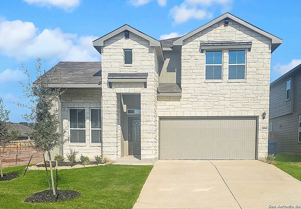 Step into The Caspian floor plan at Brookstone Creek in San Antonio, TX. This home showcases 2 classic front exteriors, full yard landscaping and irrigation and a 2-car garage. Inside this 4 bedroom, 2.5 bathroom home, you will find 2597 square feet of living space designed to meet your needs and provide the perfect place to call home. The first floor offers an elongated entry way that open to a private study area before continuing to a spacious living room. The living room blends seamlessly into the dining area and kitchen in an open concept floor plan. Your kitchen is built for the ultimate home chef and offers spacious quartz countertops, an oversized kitchen island with a deep, single basin sink, a natural gas cooking range, and stainless steel appliances. Your main bedroom suite is located off the family room and offers quality carpet flooring and a ceiling fan. Large double windows provide plenty of natural light. The ensuite bathroom includes dual vanity sinks, a private room for the toilet, a tiled walk-in shower and a grand walk-in closet. The staircase leads to a spacious game room that is open to the living room below. You'll love this space with its large windows and storage closet. Three secondary bedrooms with walk-in closets and the second full bathroom are located off the game room. Additional features of this home include tall 9-foot ceilings, 2-inch faux wood blinds throughoutt the home, pre-plumb for water softener loop and more! You'll enjoy added security in your new D.R. Horton home with our Home is Connected features. Using one central hub that talks to all the devices in your home, you can control the lights, thermostat and locks, all from your cellular device.