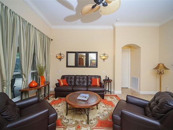 Welcome to your new home !! This well crafted spacious Four Bedroom, Three Bath pool home is well maintained and located in the popular Mill Creek 7. The Living Room / Family Room floor plan feels open and airy. Upgrades throughout include Tray Ceilings, Crown Moldings, Tile throughout all main living areas, Plantation shutters, Dual Zone HVAC System, custom Sconce Lighting, Stone counter tops and backsplash in the Kitchen. Kitchen features stainless steel appliances, Prep Island, closet style pantry and loads of cabinet/storage space. Plenty of room in the Kitchen Nook for regular dining plus Bar Counter for party buffet service. For more formal dining the spacious dining room has plenty of capacity for Family Gatherings. The Master Retreat is grand and has two spacious closets. The Master Bath offers Dual Headed Shower, plus separate tub The Pool and Patio area is secluded and private, pool is heated with Solar and runs a Salt Chlorine Generator system. Upgraded outdoor Ceiling Fans and bronze pool screen cage keep you cool while your basking in the sun. Guest wing features three bedrooms and two full baths. This Well maintained home on a quiet cul de sac also has Protective 3M film on windows for added efficiency, and a large 3 car garage. A must see !!