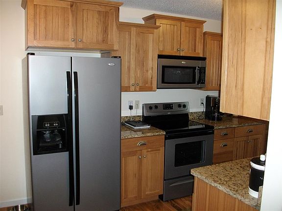Very nice! Updated kitchen with new hickory cabinets and pulls, granite, and flooring. Very attractive and nice flow. Efficient space with two bedrooms on the main floor, one a master bedroom with attached master bath and two large closets. Step out to a nice patio area and fenced backyard. Room for pets, kids or grandkids. Room for a private garden. Downstairs is a nice sized family room, another large bedroom with egress and a full bath and large walk-in closet. Spacious storage areas at both ends of the lower area. Newer furnace and air conditioner. This home would make a good downsize after a large home, or a good starter home.