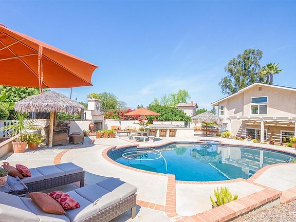 Custom Beauty-Resort Style Estate on .94 acre. Remodeled with High Quality Finishes Gourmet Kitchen Granite Counter-Tops New Carpet. Huge Family Room with Wet Bar. Large Master Suite/Retreat Wing with Dual Walk-in Closets and Office/Exercise Room or Nursery. Split-Level with 2 Bedrooms Jack & Jill Bath on Main Level. Entertaining Backyard Retreat with Multiple Areas for Guests to Mingle. Pool/Spa Built-in BBQ Fireplace 2 Palapas. Oversized Finished 2 Car Garage & Gated Auto/RV Side Yard Parking.
