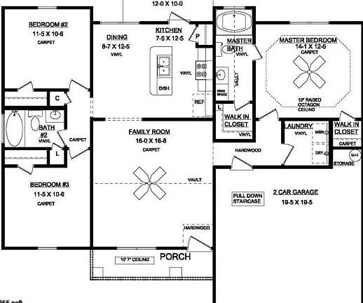 Gorgeous split plan features Family Room with vaulted ceiling & ceiling fan. Master Suite has walk-in closet & private bath with 2nd walk-in closet & vanity with knee space. Kitchen features island serving bar open to dining room and pantry. Appliance package includes 21 cubic foot refrigerator with full price offer.