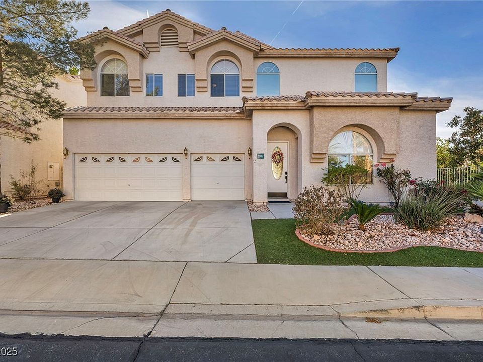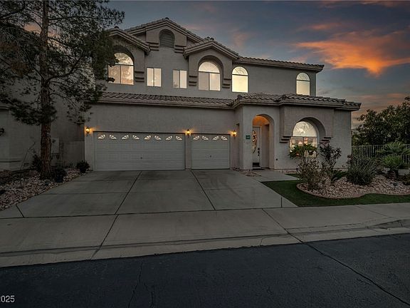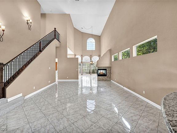 Seller is offering a unique Buyer Concession Program that could save you hundreds on your mortgage, for more details contact agent. Stunning Henderson Home in highly desirable neighborhood with Paid-Off Solar Panels & Luxury Upgrades! This premium lot has only one neighbor! This upgraded home features vaulted ceilings, fully paid solar, and a primary suite downstairs with a luxurious soaking tub, dual vanities, separate shower, and a private 3-way fireplace. The spacious living room boasts its own 3-way fireplace, perfect for cozy gatherings. The gourmet kitchen shines with custom granite countertops, a double oven, and stainless-steel appliances. A wet bar upon entry, large upstairs loft/game room, and two spacious bedrooms with a Jack & Jill bath add to the appeal. Enjoy a peaceful park-like backyard and access to the community pool and spa. 3 Car Garage has custom shelving for ample storage. This home is where recreation meets relaxation!