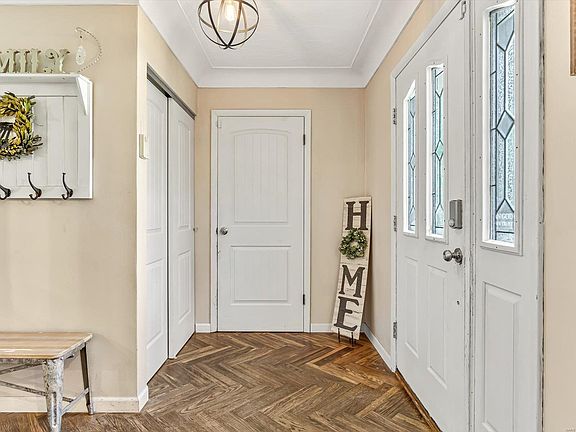 Welcome to this charming full brick ranch with lots of updated features. This cozy 4-bedroom, 2-bathroom home features a well-designed layout that promotes comfortable living. In the basement, you'll find a spacious utility/laundry room and a nice size office space. The basement also includes a large bedroom, perfect for additional family members or guests. The highlight of this property is its beautiful backyard, ideal for entertaining guests or enjoying quiet evenings outdoors. Additionally, it boasts an oversized garage, providing ample storage and parking space. Conveniently situated near Schnuck Park and Renfro Elementary School. Roof and appliances are from 2018. Garbage disposal was replaced in 2024. Trampoline may be included in the sale of the home. Sellers have included a list of items that are for sale in the home.