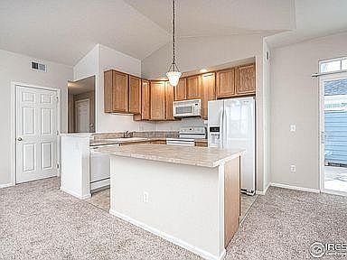 Open floor plan with vaulted ceiling, new carpet, and fresh paint. This is a second-floor corner unit with 2 bedrooms, 2 full bathrooms and southern exposure. The largest bedroom offers private full bathroom and two closets. Enjoy the private deck off the dining room with views. Also a fenced courtyard with beautiful mature landscaping. Detached 1 car garage with opener. Enjoy the nearby clubhouse, walking trails, and wildlife sanctuary. Close to shopping, sculpture park, MCR, and great restaurants. One year lease. First month rent and security deposit. Owner pays HOA and water fees, tenant pays gas and electric. No smoking, no pets. One car garage and available parking open parking.