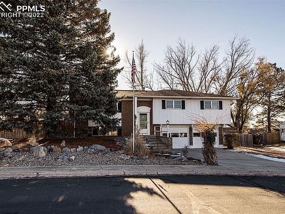 You're going to love this home in an excellent neighborhood. Your new home is located on a quiet circle with friendly neighbors and low traffic. The front yard is a low water xeriscaped area with low maintenance needs, yet many summer flowers along the walkway. As you enter the non-smoking home you will notice the fresh paint on all interior walls and the new hardwood stairs that lead you upstairs to the newly carpeted main level. The living room features a large picture window to view America's Mountain, Pikes Peak, that then opens to the dinning room and one of the kitchen entry points. The many kitchen windows naturally lite up the kitchen. The kitchen has new flooring and back splash along with newer appliances. Lots of counter space and even more cupboards and storage space for the cooks in the family. From here walk out to the big back deck and view the huge, tree shaded, back yard. Here you will find two raised garden areas for veggies and flowers with automatic sprinklers for each zone. There's a fire pit TOO! There are two sheds and one is HUGE! Back inside you'll find three bedrooms to round off the upper level. The master features a double closet and an attached recently re-done 3/4 bath. Bedroom 2 offers beautiful hard wood. The full hall bath was recently redone (even the tub was refinished). Downstairs to the family room with wood burning fireplace, Klipsch surround sound, a wet bar/fridge/high top sitting area and 1/2 bath. Cold nights with a fire, game/movie nights, friends/family coming over, BBQ? This is the place! NOW the garage! At over 500 sq feet, Space for 2 cars, a freezer, another drink fridge, cabinets and 2 work bench's are already installed. What wont fit into the garage will fit inside the HUGE shed out back. PLUS space next to garage for a RV and a boat and a trailer. Located within walking distance to an elementary school and a short bike ride from Palmer Park. New electric service and whole house converted to LED.
