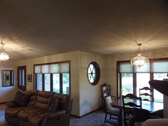 Beautiful home in a super location. Wonderful home for entertaining! Close to all grade levels of school. Large rooms, double sided fireplace on main level. The kitchen has gorgeous new granite counter tops and glass back splash. It includes 6 lazy susans, under cabinet lighting, Jenn Aire range with many attachments for cooking choices. Laundry room on main floor with 1/2 bath. Three car oversize garage with workshop area, sink, cabinets and attic storage. Master bedroom opens onto covered deck. The basement has two large bedrooms with double closets. The family room has a huge rock fireplace with pit seating. Walk out basement to covered patio. Many built in cabinets, bookcases, credenza, floor to ceiling hutch. 2 attic fans keep air moving to help with cooling. The backyard has a koi pond area (currently not in use).