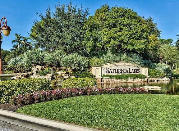 Beautiful, maintained "Osprey" floor plan in one of the most desirable communities in North Naples, Saturnia Lakes. Offering 5 bedrooms, den, 4 baths and your own private pool. The second level Master Suite offers his and her bathrooms, large his and her closets and a exercise/sitting room. The second level also contains 3 additional bedrooms, hall bath and laundry room. Saturnia Lakes offers a 12,000 sq ft clubhouse, resort pool, kiddie pool, lap pool, 4 lighted tennis courts, fitness room and many more amenities. HOA fees include landscaping, irrigation, amenities, new fiber-optics throughout the community and cable tv.