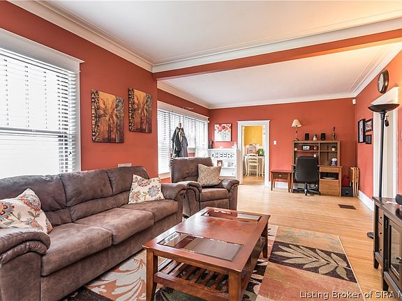 BEAUTIFUL Bungalow in a great location of New Albany right off of Silver street that boast 2 beds, 1 bath with an unfinished WALK UP basement! With approx 1000 Sq ft on the main level this home offers nice updates while still keeping the historical charm alive from the covered front sitting porch, skinning plank wood flooring, and beautiful mill work on the inside and out. The family room is a great wide open space that could be multi-functional due to the large size. The kitchen is well equipped and offers a separate dining area close by! Call today!