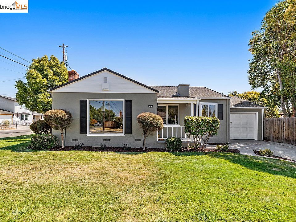 Gorgeous and completely renovated home with 2 bedrooms and 1 bath on a corner lot. The home boasts an open concept kitchen with quartz countertops and a brand new SS gas range and dishwasher. A large peninsula with bar seating opens to the dining room and living room for easy entertaining. Admire the crown molding details and double pane windows while sitting by the wood burning fireplace in the living room. The farmhouse styled bath is a must see! The whole house is freshly painted inside and out, and has brand new luxury vinyl flooring throughout. Come see the private fenced in yard where you can have your end of summer BBQ entertaining family and friends or just a fun space to play with your dog. Since the house sits on a corner lot there are two driveways so it has extra parking or possible RV/Boat parking. Excellent commuting location right off 580, close to Castro Valley BART, downtown Castro Valley and Hayward are within minutes and Trader Joes is just a few blocks away. Don't miss this charming home!