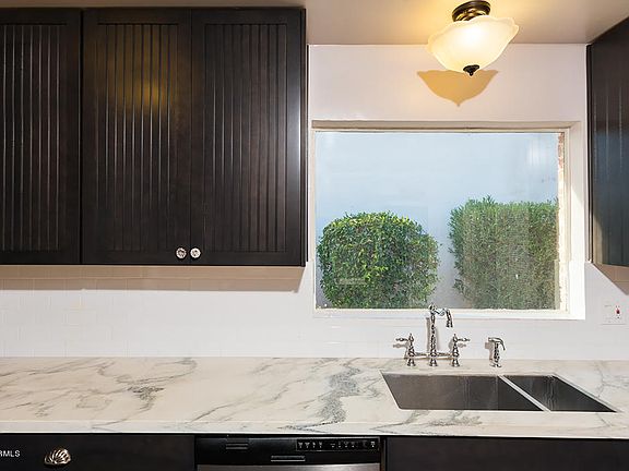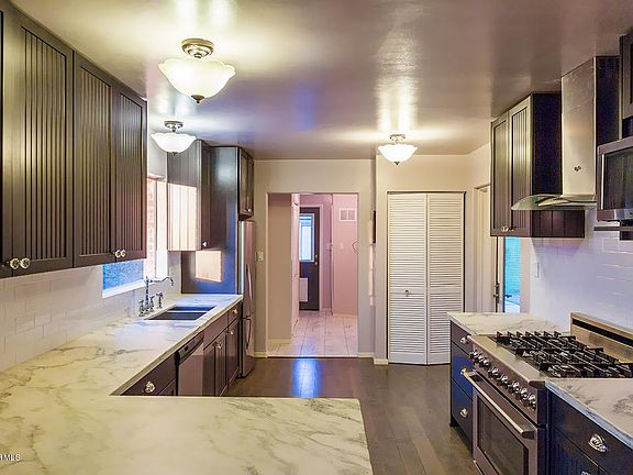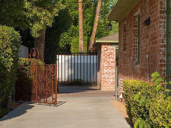 Stunning red brick home in the historic Palmcroft neighborhood. Formal entry leads to large living room with wood burning fireplace and recessed lighting. Custom kitchen features espresso maple cabinetry, leather finish carrera marble counters, and stainless appliances including oversize industrial gas range. Gorgeous hand scraped mahogany hardwood flooring through the entire home. Master suite with 3 closets, french doors leading to rear patio, and luxurious master bath with walk-in shower, dual sinks, and claw foot tub. Extra large guest bedrooms with ample closet space and one with private courtyard. Grassy front and backyard with mature landscaping and lots of privacy. 2 car garage with automated gate leading to alley. This exclusive and historic home is a must see!