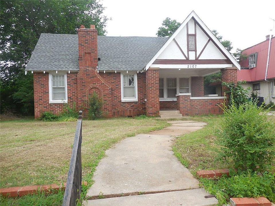 Location, Location! Make you're updates to this Classic Brick Home. From the covered porch enter to a spacious living with fireplace. There is a kitchen with eating area and counter. The property as has 2 bedrooms, 1 bath and an inside utility room. Large fenced back yard and a 2 car detached garage. Come take a look.