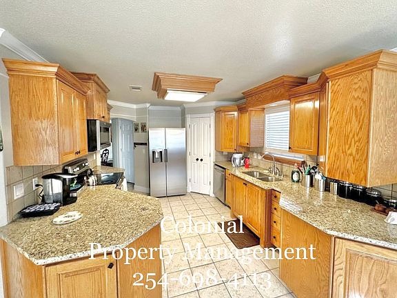 Available Now! Yard care provided! Welcome to your dream home in Harker Heights, TX! Nestled in highly sought after community of Country Trail. This magnificent 2874 square foot house, nestled in a charming neighborhood, is now available for rent. Built in 1997, this stunning property boasts 5 bedrooms and 4.5 bathrooms, providing ample space and comfort for any lifestyle. With a spacious layout and modern amenities, this home is perfect for those seeking a peaceful and luxurious living experience. Gleaming Mesquite hard wood floors highlight the living areas which also share high ceilings and thick crown molding. The formal dining room has chair railing and arched entries. Adjacent is the living room with a distinctive fireplace and wall of windows. The gourmet kitchen shines with upgraded appliances and includes a breakfast area with bay window. Huge master suite on Main level and includes access to balcony with lighted ceiling fan and a view of the lush backyard. For great privacy, this split floor plan includes all minor bedrooms and second living area on the bottom story. Outside entertaining will be calling your name all year thanks to the outdoor kitchen with a built-in grill surrounded by tile countertops. The tiled covered patio includes stately columns. This home has it all. Call to schedule your viewing today! *SMALL DOGS ONLY ALLOWED*