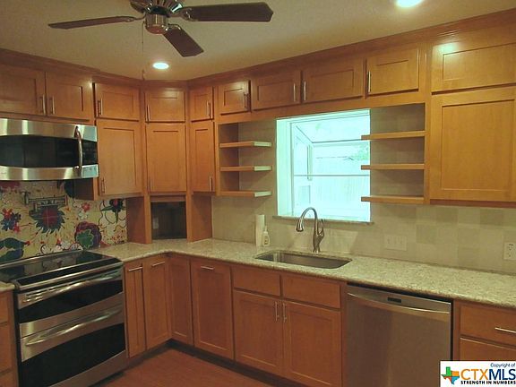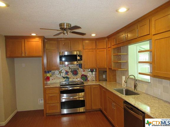 Great neighborhood with big lots and huge trees. There is a neighborhood park that you can walk to. The home is conveniently located to shopping and to the medical centers. The home has been upgraded with a fabulous kitchen. It features beautiful custom cabinets and quartz counter tops. The master bathroom and the hall bathroom have been remodeled. They have impressive custom cabinets, new quartz counter tops, and a beautiful shower in the master bath. The hall bath has a beautiful combination tub and shower with a pretty surround. It looks great! The bedrooms are all good size. This home has lots of storage. so you can keep everything you want to. The large back yard has a big patio and huge trees!