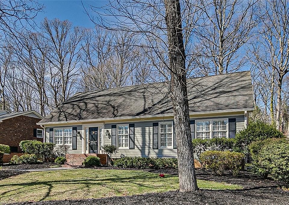 Stunning Forest Valley. QUALITY RENOVATION by Classic Construction, HARDWOOD FLOORS in living area, UPGRADED CARPET in den and bedrooms. Quality insulated windows with fixed grids. SMOOTH CEILINGS and heavy crown molding on first floor. Kitchen has GRANITE and tile backsplash, STAINLESS appliances, PLANTATIONS SHUTTERS, Beaded board walls in BF. FIRST FLOOR PRIMARY bedroom with WALK-IN closet. Den with new GAS LOGS, bookcases, recessed lighting and doors to the nicest SCREEN PORCH with brick pavers. Lovely FENCED YARD. Exterior storage room and Walk out storage in house. Reno includes re-wiring nd encapsulated crawl space. Grimsley school district, short drive to Friendly Center, Bryan Blvd. and parks! Seller is licensed NC Realtor. Washer and dryer remain.