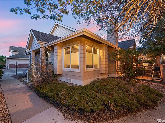 Unique and welcoming ranch-style corner townhome nestled in the sought-after Willow Ridge community. Step into your ideal abode, free from stairs and devoid of neighbors above or below, featuring just one shared wall. Delight in the tranquility of your private retreat. The expansive primary suite boasts a walk-in closet, vaulted ceiling, and an attached 4-piece primary bathroom. A second bedroom with its own bathroom provides additional comfort. The main living area exudes warmth and charm, centered around a fireplace that enhances both the living and dining spaces. The open kitchen, complete with bar seating, showcases soaring ceilings and a skylight, flooding the space with natural light. Step outside to a charming patio enveloped by nature, offering ample privacy. Convenient in-unit laundry facilities add to the ease of living. Plus, revel in the convenience of an impressive 2-car attached garage with storage space. This residence is ideally situated within close proximity to the clubhouse, pool, tennis courts, and greenbelt. Nestled in the esteemed Cherry Creek school district, it's also within walking distance to public transportation, parks, and offers easy access to I-225 and the Heather Ridge Golf Club.