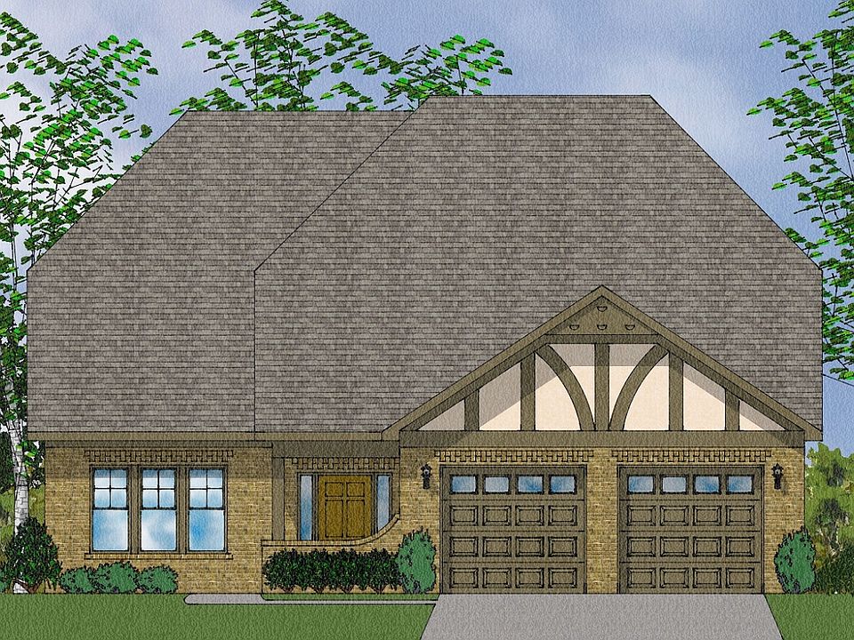 The Fairchild is a one-story, Craftsman style home featuring three bedrooms, two full baths, formal dining room and screened-in porch on nearly a half acre. The primary suite has a five-foot tile shower, large walk-in closet and access to the screened-in porch. The kitchen includes stainless appliances with gas range, farmhouse sink, quartz countertops, tile backsplash, pantry and a large peninsula with bar top which is open to the great room. There is a vaulted ceiling and fireplace in the great room. The formal dining room has a coffered ceiling and beautiful arched doorways. Two secondary bedrooms share a full bath and are adjacent to the laundry room.