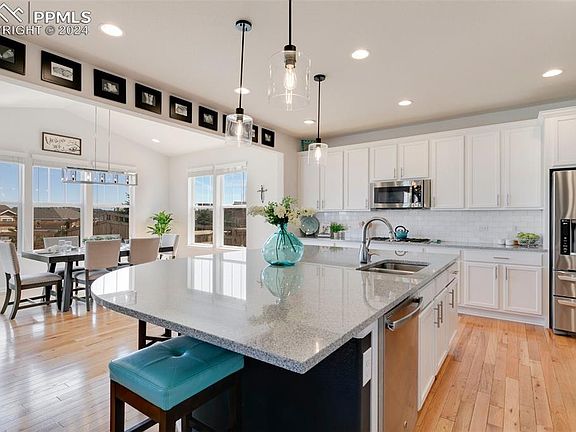 This gorgeous home in the desirable Meadows neighborhood rivals new construction with so many beautiful upgrades AND backs to open space! *** A chef's DREAM kitchen w/ huge granite island, expansive counter prep space, marble tile backsplash, 42" cabinets w/ crown molding, double oven, gas range, refrigerator included, walk-in pantry *** Open great room floor plan w/ 9' ceilings, LED canned lighting, wood flooring, gas fireplace w/ custom mantle and slate tile surround, dining area with upgraded lighting and walk-out to covered patio for more entertaining space and enjoyment of open space behind *** Main level office w/ French doors *** High end custom front door *** Main level 9' ceilings, 8' doors, wood flooring, light and bright *** New carpet on main and upper levels *** Upper level loft *** Large primary suite w/ 5 pc ensuite bath, upgraded tile floor, double granite vanity, shower w/ upgraded tile, soaking tub, walk-in closet *** 3 more bedrooms on upper level, one bedroom has an attached private 3/4 bath, additional full bath, laundry room w/ cabinet storage - all bathrooms have upgraded tile and granite counters *** Spacious family room downstairs for additional living space and perfect areas for games or play space *** Additional bedroom downstairs, 3/4 bath with upgraded tile and granite *** Covered back patio w/ expanded patio living area, open space behind, dog run, landscaped yards *** Covered front porch *** 3 car garage *** Enjoy 2 public pools, parks, and trails! *** Come check out this beauty before it's gone!