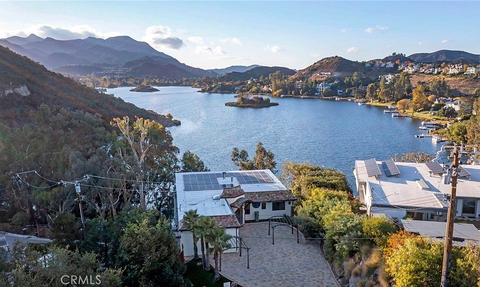 Welcome to an enchanting haven boasting panoramic views of Lake Sherwood. This light-filled residence captivates with its Colorado River backlit onyx stone accents, hardwood floors, and charming shiplap ceilings, with floor to ceiling glass windows showcasing the breathtaking view of Lake Sherwood, creating an ambiance of modern elegance. The main bedroom is a sanctuary with a cozy fireplace, expansive windows framing the serene lake and mountain backdrop, and an opulent soaking tub, shower, and walk-in closet. Below the main house lies a guest house, mirroring the breathtaking views, offering privacy and comfort in equal measure. Crafted with meticulous attention to detail, this uniquely designed feng shui home seamlessly blends luxury and tranquility, providing an idyllic retreat embodying the essence of Sherwood's quaint lifestyle. Whether unwinding in the soothing embrace of the main suite, enjoying the expansive backyard with a private dock and boat access, or savoring the scenic allure of your entertainment living room, this property invites you to indulge in a harmonious fusion of exquisite design and natural beauty.