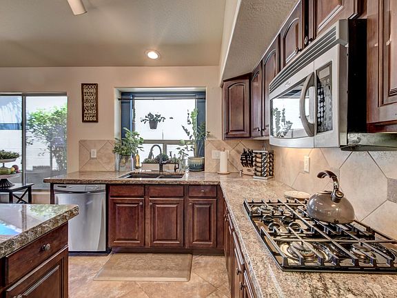 You've finally found that beautiful single level 3 car garage with resort backyard you've been dreaming about! Some of the endless upgrades include a highly desirable split floor plan, 4 bedrooms, great-room, stone fireplace, plantation shutters, plank tile flooring & new plush carpeting. The chefs kitchen includes rich darkwood cabinets, gas cooktop, dual ovens, custom granite counters & SS appliances. Over-sized master bdrm suite includes walkin closet, spa tub, granite counters & split level vanity. The amazing backyard with heated pebble-tec pool & spa, built-in BBQ station, firepit seating area & low maintenance turf is the perfect setting for entertaining all your friends and family. The new 18 seer Trane A/C, N/S facing & abundant shopping roundout this hard to beat gorgeous home.