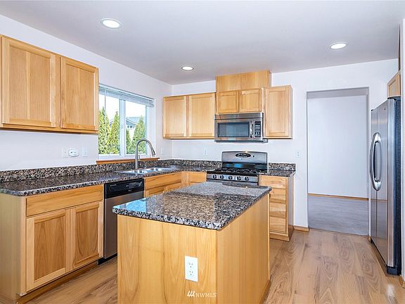 Currier Creek home with well designed floor plan now available. Two story 1798 sf open floor plan has 3 bedroom 2.5 baths with den/bonus room with french doors. Beautiful kitchen with granite countertops with SS appliances, gas range, island with pantry. Family room has gas stove. Vaulted ceilings in living room that leads to open dining room. Privately fenced back yard is low maintenance with under ground sprinkler system. Gas forced air furnace with AC. Fully landscaped with large 3 car garage for parking with plenty of storage.