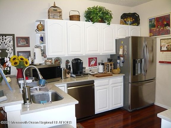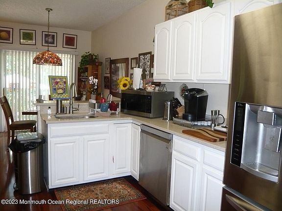 Welcome to your dream home in Freehold Twp. This exqui Contemp End Unit Townhouse boasts luxurious living with modern elegance. With 3 spacious Bedrooms, 2.5 baths, and a full finished basement, this home offers comfort, style and functionality that exceeds expectations. Nestled with wooded backdrop situated on a premium lot location offers privacy. Step inside to see this stunning kitchen featuring updated amenities including SS appliances, Quartz countertops, breakfast bar with separate dinette. Upstairs discover a serene en-suite complete with custom walk-in closet and full bath. Two additional well appointed bedrooms offer ample space and comfort for family members and guests. But that's not all - this home boasts a full finished basement providing an expansive area for recreation, a home office or even a gym. The possibilities are endless, making this space as versatile as it is impressive. Other features include gleaming hardwood floors, den with gas fireplace and sliders to a large patio. The community itself is filled with amenities, including a clubhouse, exercise room,pool, tennis, pickleball and basketball court providing an enriching and engaging lifestyle for residents of all ages. Conveniently located, you'll have easy access to shopping, dining, entertainment and major highways and public transportation, making daily commute a breeze. Don't miss out on the opportunity to own this gem in a sought-after location.