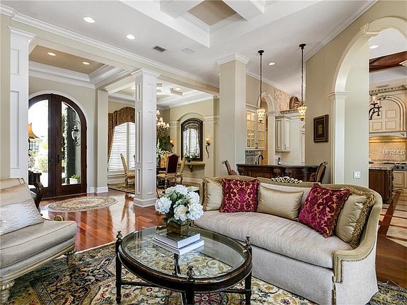 Perfectly sited on over one acre overlooking pristine Lake Roberts in guard gated Waterford Pointe this stunning lakefront home captures the rich details and strong lines of European influence. The travertine pavered drive provides a lovely progression to the arched solid wood and glass entry doors. This home has been completely remodeled with superior finishes and additions. Elements of surprise enrich the interior from the foyer to the formal areas complete with fireplace, distinctive ceiling detail, and Brazilian cherry flooring. Opening naturally to the chefs kitchen and taking in the lake views and natural light through the expansive French doors the family room is awesome featuring custom built ins and a gas fireplace. The dream kitchen features beautiful custom cabinetry, sleek stainless appliances, a large working island, huge pantry, and exotic granite counter tops. Magnificent views of Lake Roberts create an intimate relationship between the expansive covered outdoor areas and the casual living space. The office/bonus room offers stunning lake views and features custom built-ins. The outdoor living area is perfect for dining al fresco and entertaining family and friends with sweeping lawn and boathouse with dock and lift. Triple French doors open to an airy master retreat. The lovely spa like master bath is well finished with walk in steam shower, double quartz vanities, a garden tub and amazing closet systems. Secondary bedrooms are conveniently located on the first level.